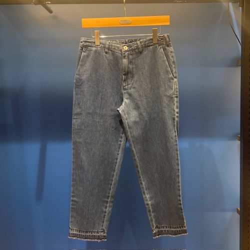 スラックス型のクロップド丈デニムパンツで