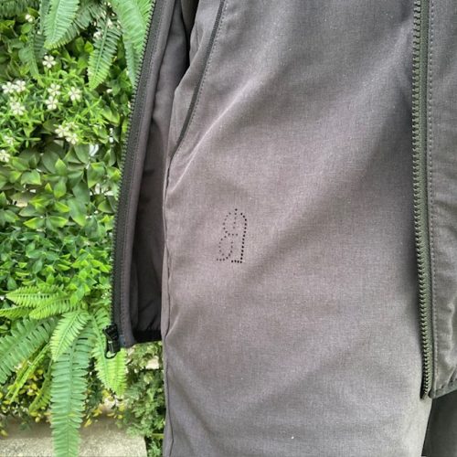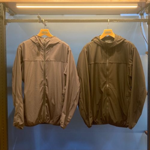 袖口、裾口、フード口はパイピング仕様で