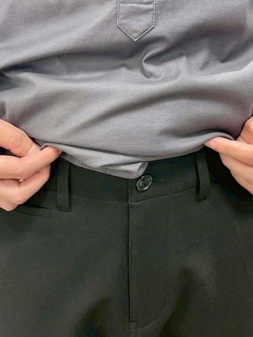 ウエストはベルトループ付きの綺麗目デザイン。