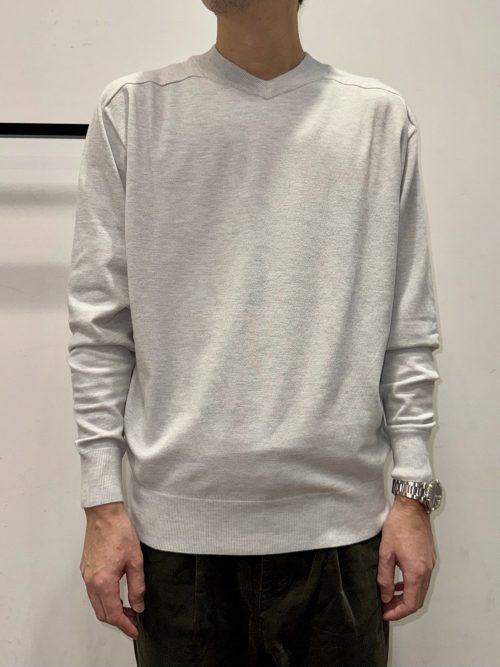 インナーに使いやすいカットソーのような薄手のVネックニット。