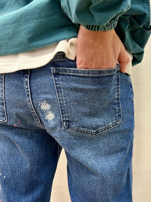 レーザー加工&刺繍 スリムフィットジーンズ