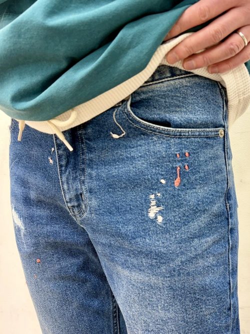 レーザー加工&刺繍 スリムフィットジーンズ