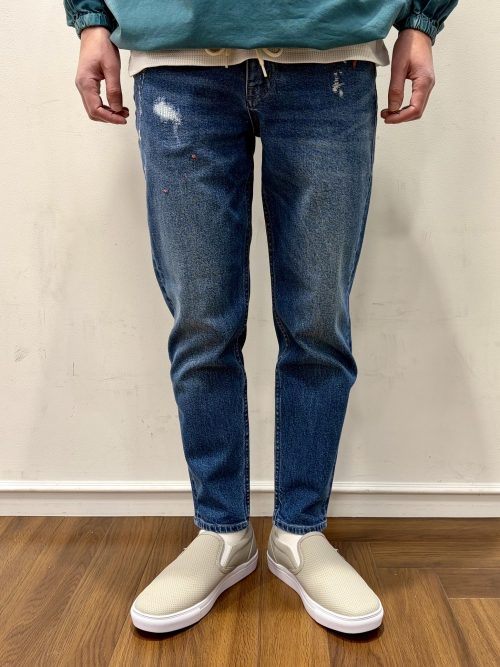ストレッチデニム生地を使用したスリムシルエットパンツです。