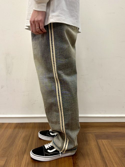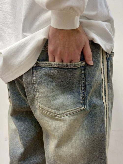 「ガムストレッチ デニム」サイドライン ワイドジーンズ