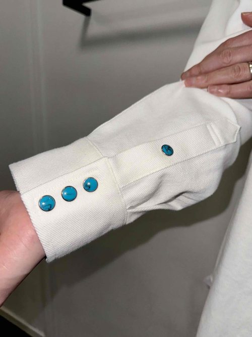 お袖に並ぶ「ターコイズ風スナップボタン」が素敵です。