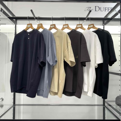 オーバーサイズシルエットの半袖ヘンリーネック。