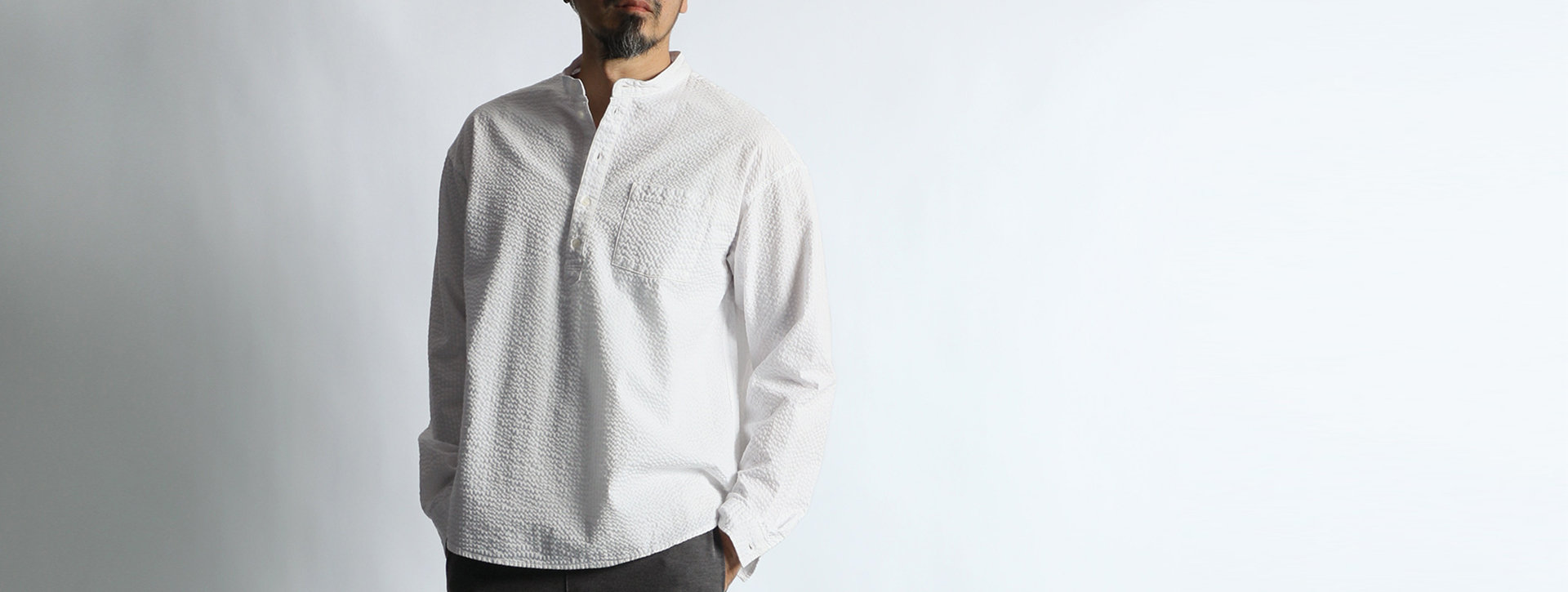 シアサッカー バンドカラーシャツ【WEB限定アイテム】
