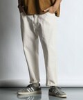 ヒップとワタリにゆとりを持たせ、裾にかけて緩やかにテーパードを効かせたワイドシルエット。