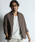 フロントのボタンを隠すことで、通常のワークシャツやミリタリーシャツにはない、クリーンで都会的な表情に仕上げています。