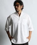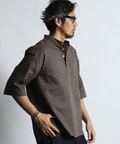 綿麻素材 セットアップ 7分袖 バンドカラーシャツ